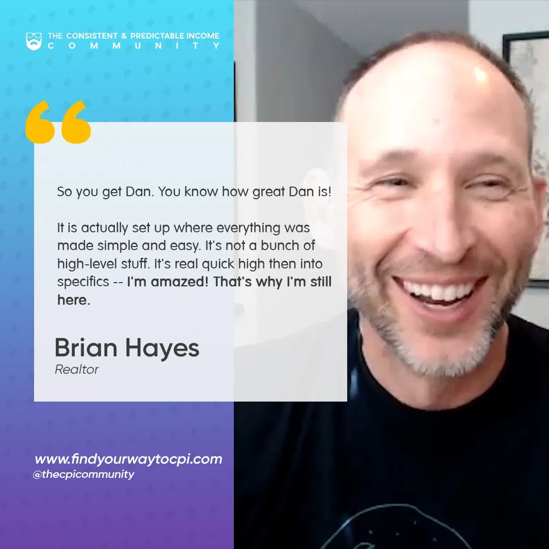 Head CPI Coach/ Visionary Dan Rochon will be your guide. Dan profoundly understands lead generation and conversion and has studied the economics of a real estate agent's actions that lead to results and, generally, how to succeed in real estate sales.